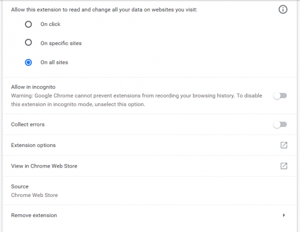 - Toggle it to existOnif you want to let running of this extension in Incognito Fashion.
